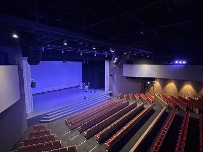 綺麗で洗練された空間に、常設のムービングライトも完備されており、ライブイベントにもぴったりな雰囲気の劇場でした。